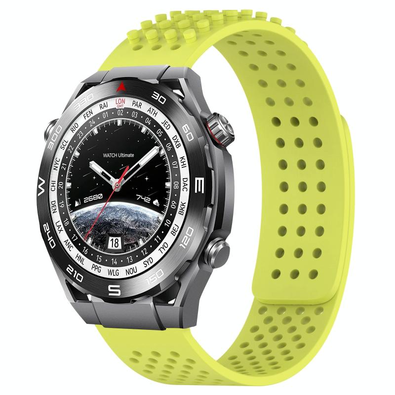 For Huawei Watch Ultimate 22mm Holes Breathable 3D Dots Silicone Watch Band(Lime Green)
