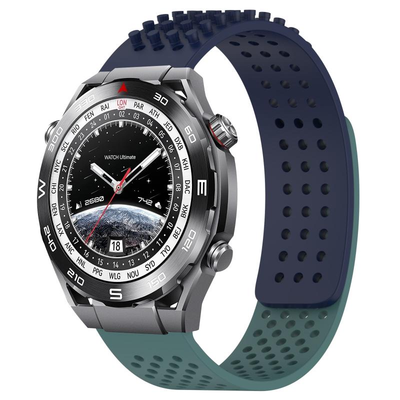 For Huawei Watch Ultimate 22mm Holes Breathable 3D Dots Silicone Watch Band(Midnight Blue+Olive Green)