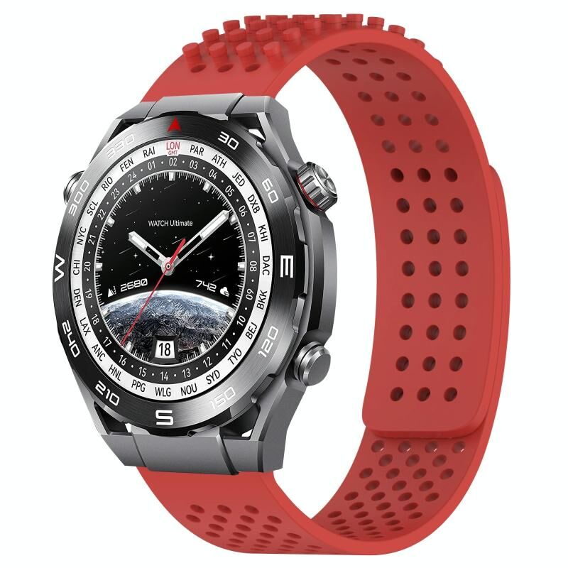 Για το Huawei Watch Ultimate 22mm οπές αναπνεύσιμο 3D Dots σιλικόνης ρολόι μπάντα ρολογιών (κόκκινο)