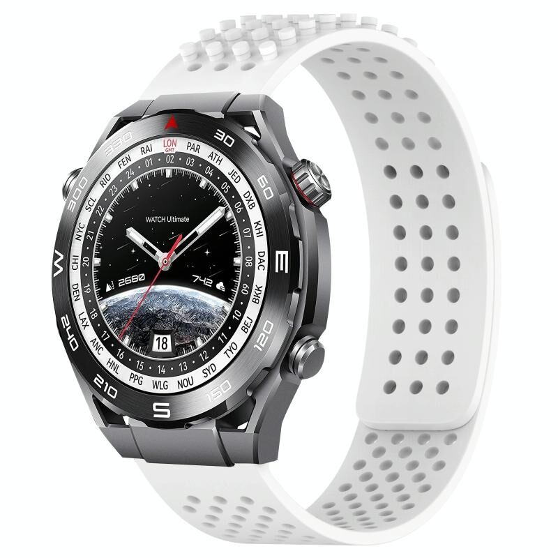 Για το Huawei Watch Ultimate 22mm τρύπες αναπνεύσιμο 3D Dots σιλικόνης ρολόι μπάντα ρολογιών (λευκό)