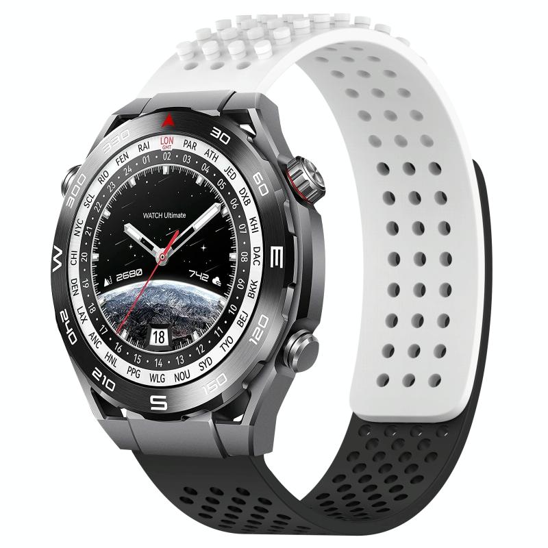 For Huawei Watch Ultimate 22mm Holes Breathable 3D Dots Silicone Watch Band(White+Black)