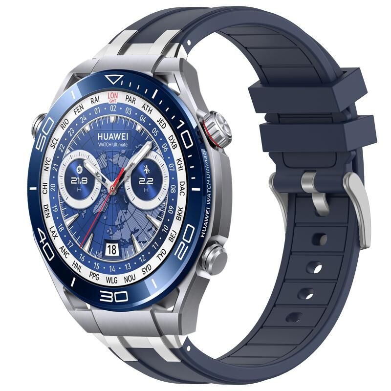For Huawei Watch Ultimate 22mm Quick Release Silver Buckle Royal Silicone Watch Band(Navy Blue)