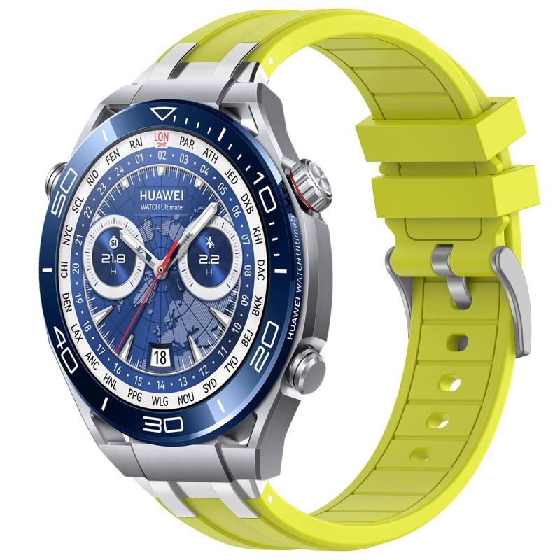For Huawei Watch Ultimate 22mm Quick Release Silver Buckle Royal Silicone Watch Band(Vital Yellow)
