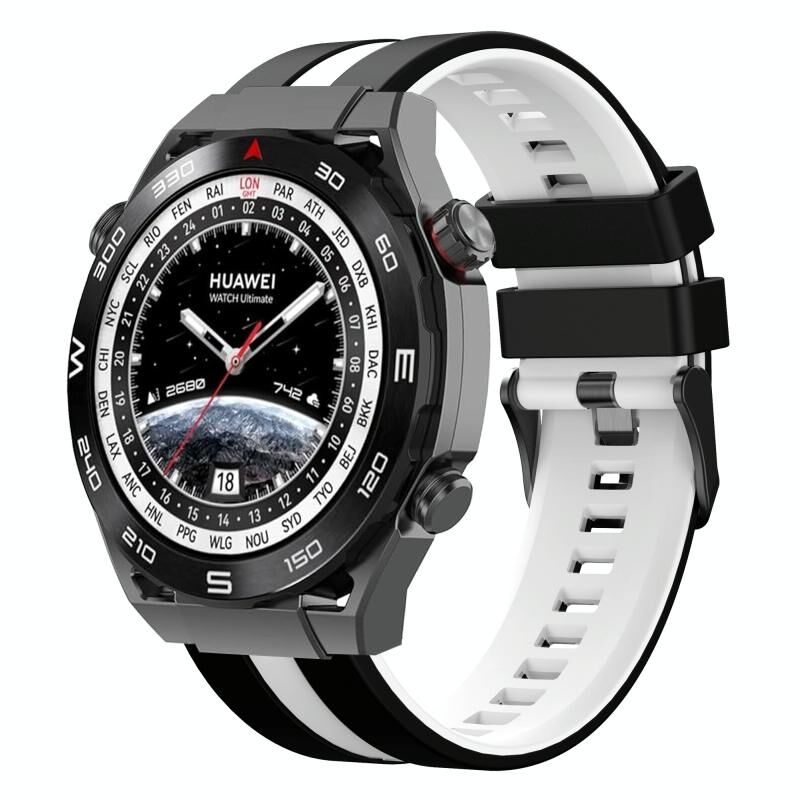 Για το Huawei Watch Ultimate 22mm δύο χρωμάτων αθλητική ζώνη ρολογιού σιλικόνης (μαύρο+λευκό)