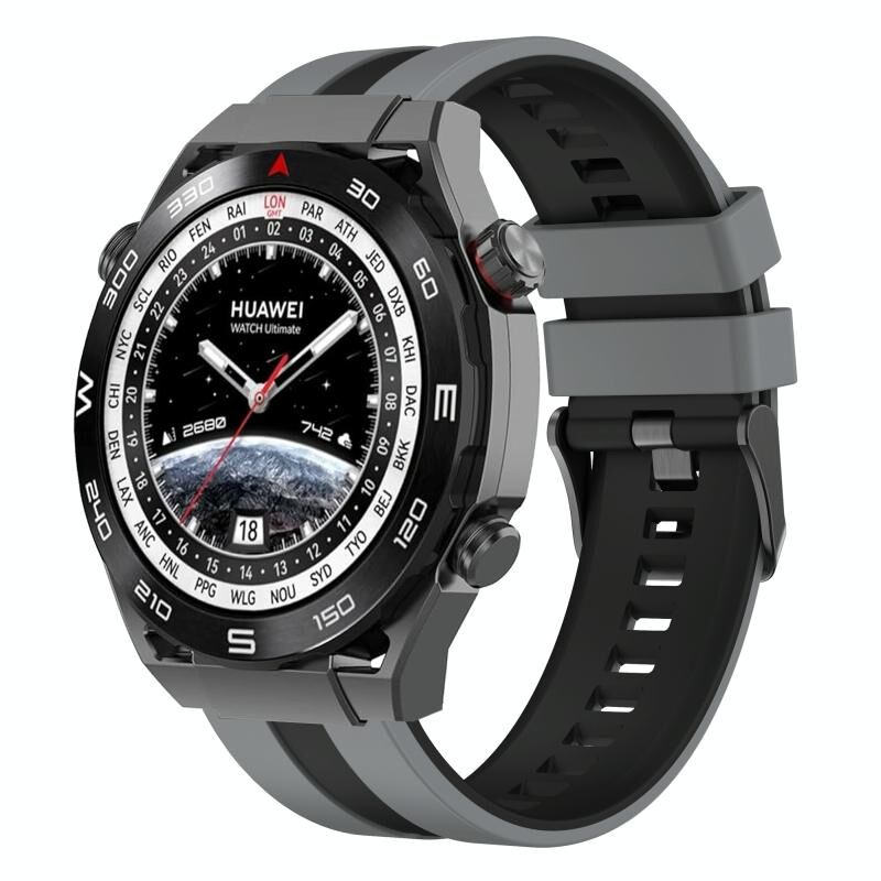 Για το Huawei Watch Ultimate 22mm δύο χρωμάτων αθλητική ζώνη ρολογιού σιλικόνης (γκρι+μαύρο)