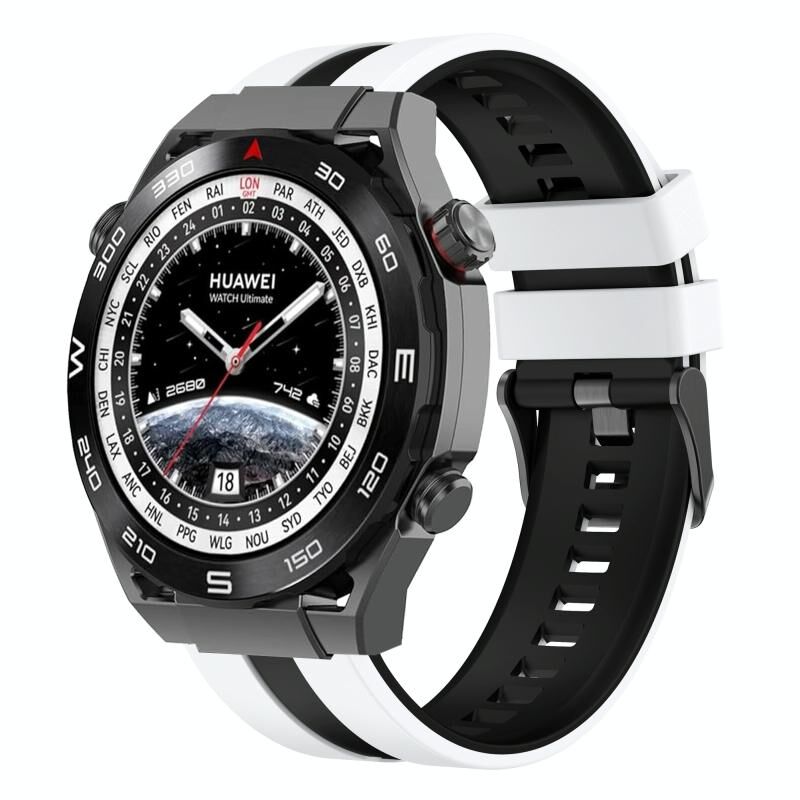 Για το Huawei Watch Ultimate 22mm δύο χρωμάτων αθλητική ζώνη ρολογιού σιλικόνης (λευκό + μαύρο)
