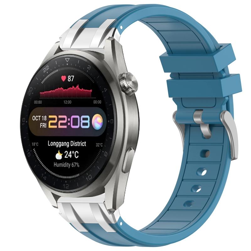 For Huawei Watch3 Pro New 22mm Quick Release Silver Buckle Royal Silicone Watch Band(Sea Blue)