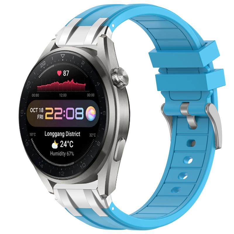 For Huawei Watch3 Pro New 22mm Quick Release Silver Buckle Royal Silicone Watch Band(Sky Blue)