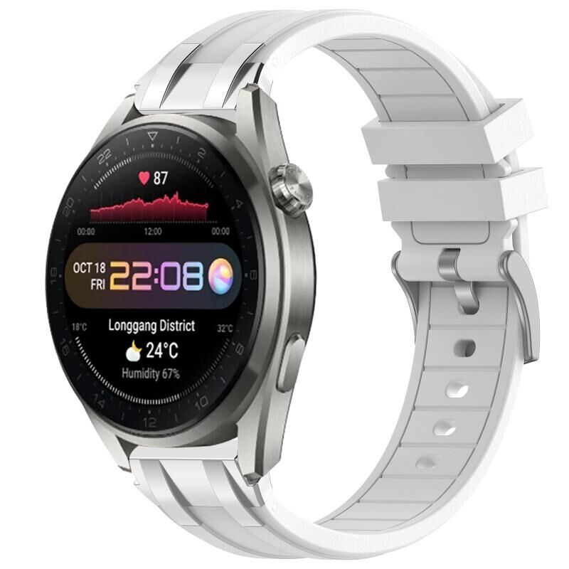 For Huawei Watch3 Pro New 22mm Quick Release Silver Buckle Royal Silicone Watch Band(White)