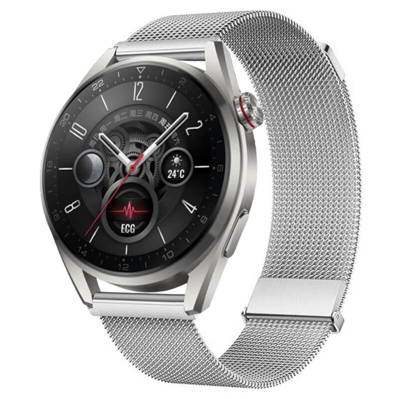 Για το Huawei Watch3 Pro Νέο Μιλάνο Διπλό μαγνητικό λουράκι ρολογιού από χάλυβα (Ασημί)