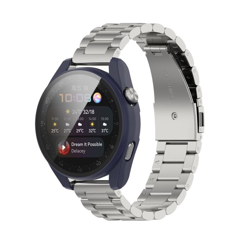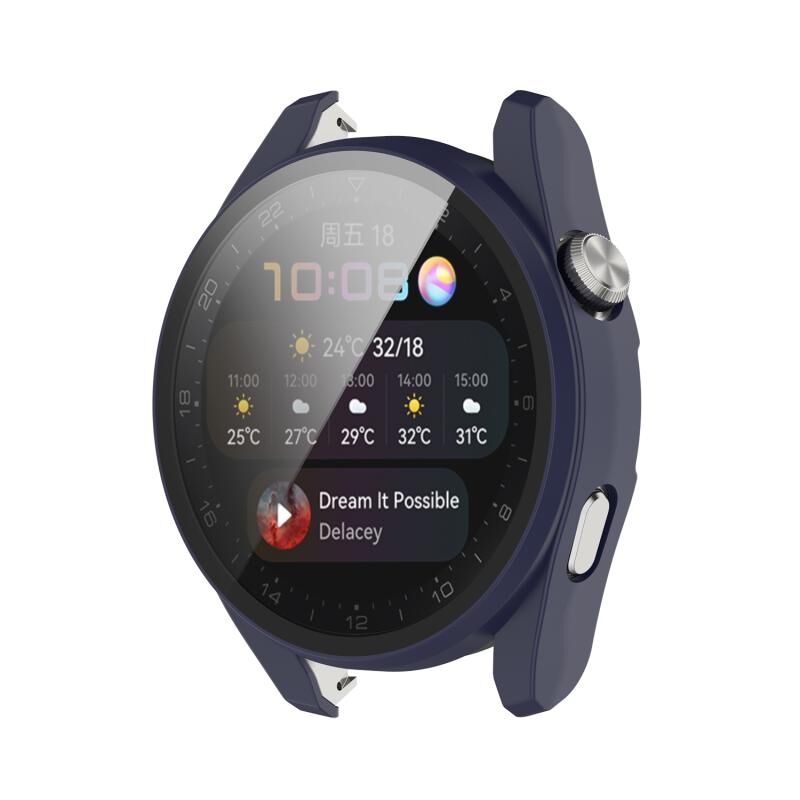 Για το Huawei Watch3 Pro Νέο PC + Μετριασμένο γυαλί ενσωματωμένη προστατευτική θήκη ρολογιού (Μπλε μεσάνυχτα)