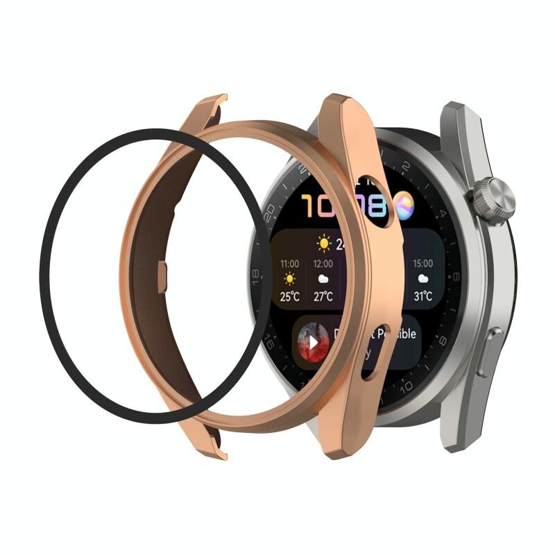 Για Huawei Watch3 Pro Νέο PC + Μετριασμένο γυαλί ενσωματωμένη προστατευτική θήκη ρολογιού (ροζ χρυσό)