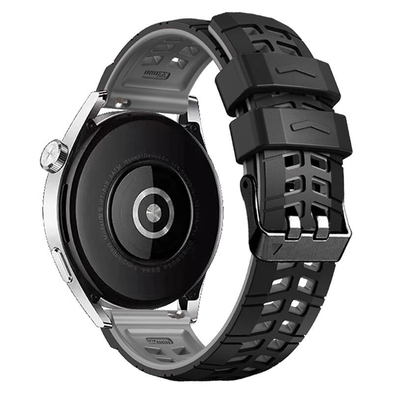 Για το Huawei Watch4 / 4 Pro / Watch3 / 3 Pro 22 χιλιοστά διπλής σειράς τρύπα δύο χρωμάτων σιλικόνης ρολόι μπάντα ρολογιού (μαύρο γκρι)
