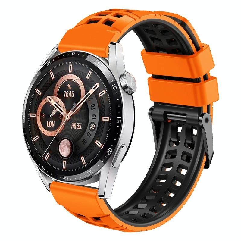 For Huawei Watch4 / 4 Pro / Watch3 / 3 Pro 22mm Double-row Hole Two-color Silicone Watch Band(Orange Black)