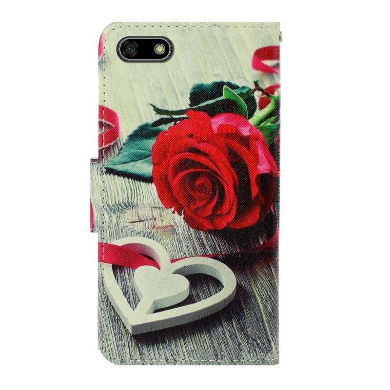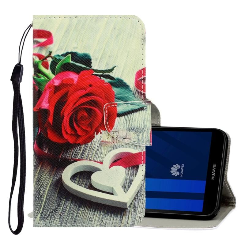 Θήκη για Huawei Y5 2018 3D με έγχρωμο σχέδιο, οριζόντια αναδίπλωση από δερματίνη PU με βάση στήριξης & θήκες για κάρτες & πορτοφόλι (Κόκκινο Στόμα Γάτας)