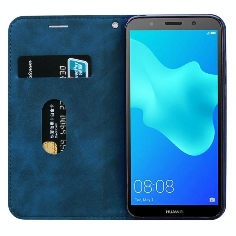 Θήκη Huawei Y5 (2018) με μαγνητικό κλείσιμο, οριζόντια, από δερματίνη PU με ματ υφή, με βάση στήριξης, θήκη για κάρτες και κορδόνι (Μπλε)