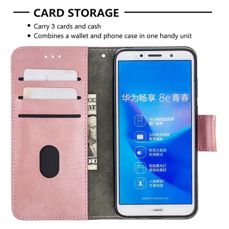 Για Huawei Y5 (2018) Ασορτί χρώμα κροκόδειλο υφή οριζόντια Flip PU δέρμα υπόθεση με κάτοχο & υποδοχές καρτών & πορτοφόλι (Rose Gold)