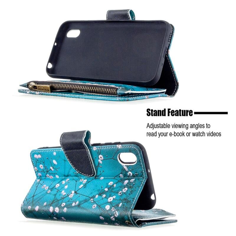Θήκη Huawei Y5 (2019) με σχέδιο ζωγραφικής, χρώματος, οριζόντια αναδιπλούμενη από δέρμα με φερμουάρ, με βάση & θήκες για κάρτες & πορτοφόλι (Λουλούδι Δαμασκηνιάς)