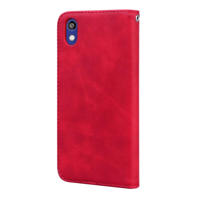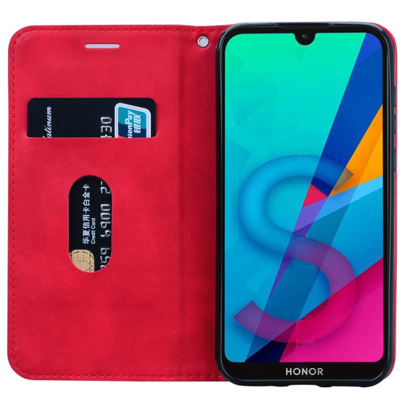 Θήκη Huawei Y5 (2019) / Honor 8S με μαγνητικό κλείσιμο, οριζόντια, από δερματίνη PU με υφή, με βάση στήριξης & θήκη για κάρτες & κορδόνι (Κόκκινο)