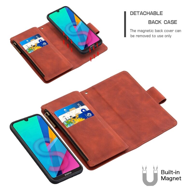 Για το Huawei Y5 (2019) Skin Feel Αποσπώμενο μαγνητικό φερμουάρ Οριζόντια Flip PU δερμάτινη θήκη με θήκη & υποδοχές καρτών & πορτοφόλι & πλαίσιο φωτογραφιών & κορδόνι (καφέ)
