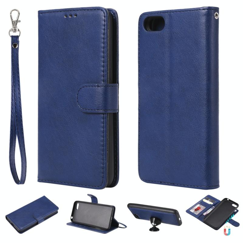 Θήκη προστασίας οριζόντιας αναδίπλωσης για Huawei Y5 Prime (2018) σε μονόχρωμο χρώμα με βάση στήριξης & θήκες καρτών & πορτοφόλι & κορνίζα φωτογραφιών & κορδόνι (Μωβ)