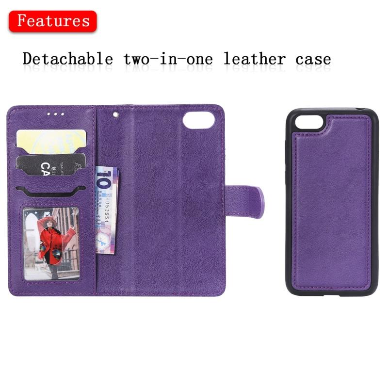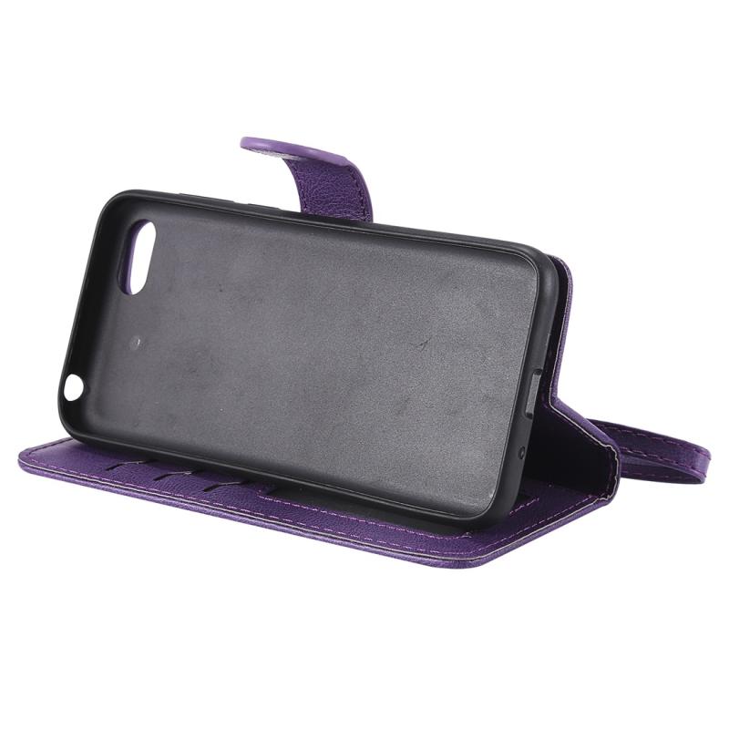 Θήκη προστασίας οριζόντιας αναδίπλωσης για Huawei Y5 Prime (2018) σε μονόχρωμο χρώμα με βάση στήριξης & θήκες καρτών & πορτοφόλι & κορνίζα φωτογραφιών & κορδόνι (Μωβ)