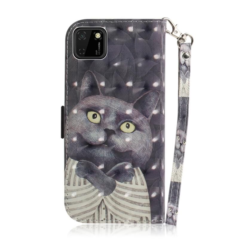 Θήκη δέρματος Huawei Y5p με μαγνητικό κλείσιμο, ζωγραφισμένο σχέδιο 3D, οριζόντιο άνοιγμα, με βάση στήριξης, θήκη για κάρτες, πορτοφόλι και κορδόνι (Αγκαλιάζοντας Γάτα)