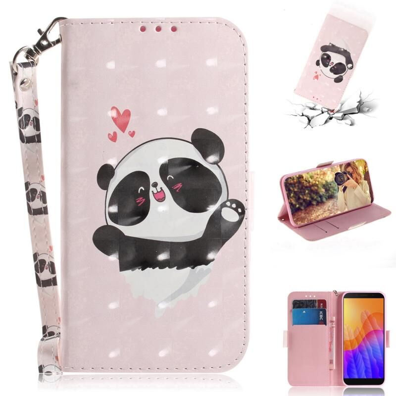 Θήκη δέρματος οριζόντιας αναδίπλωσης με μαγνητική έλξη και τρισδιάστατο σχέδιο για Huawei Y5p, με βάση στήριξης, θήκη για κάρτες, πορτοφόλι και κορδόνι (Αρκουδάκι με καρδιά)