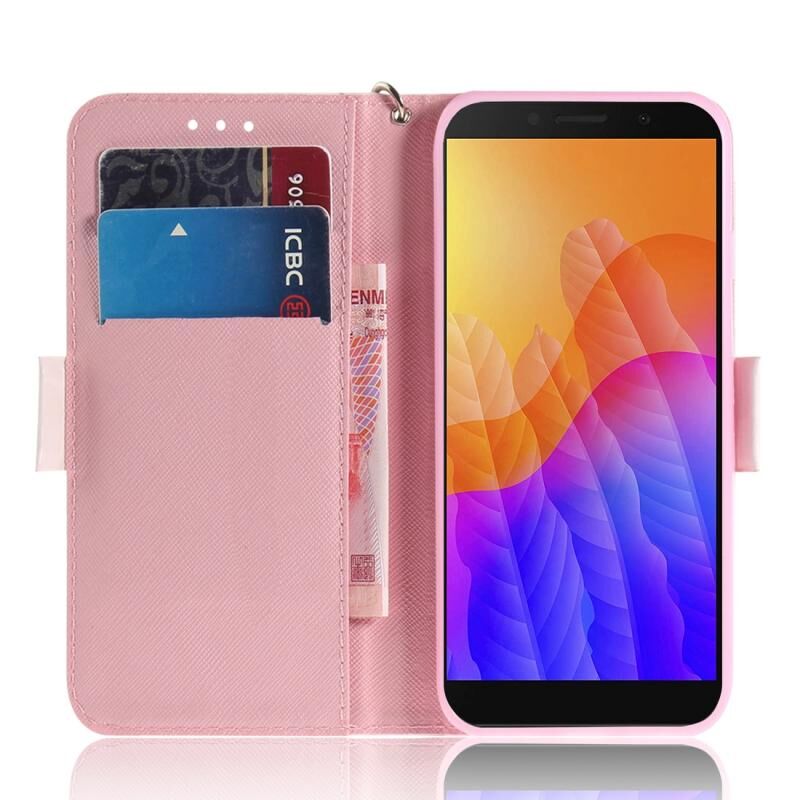 Θήκη δέρματος οριζόντιας αναδίπλωσης με μαγνητική έλξη και τρισδιάστατο σχέδιο για Huawei Y5p, με βάση στήριξης, θήκη για κάρτες, πορτοφόλι και κορδόνι (Μαγνολία)