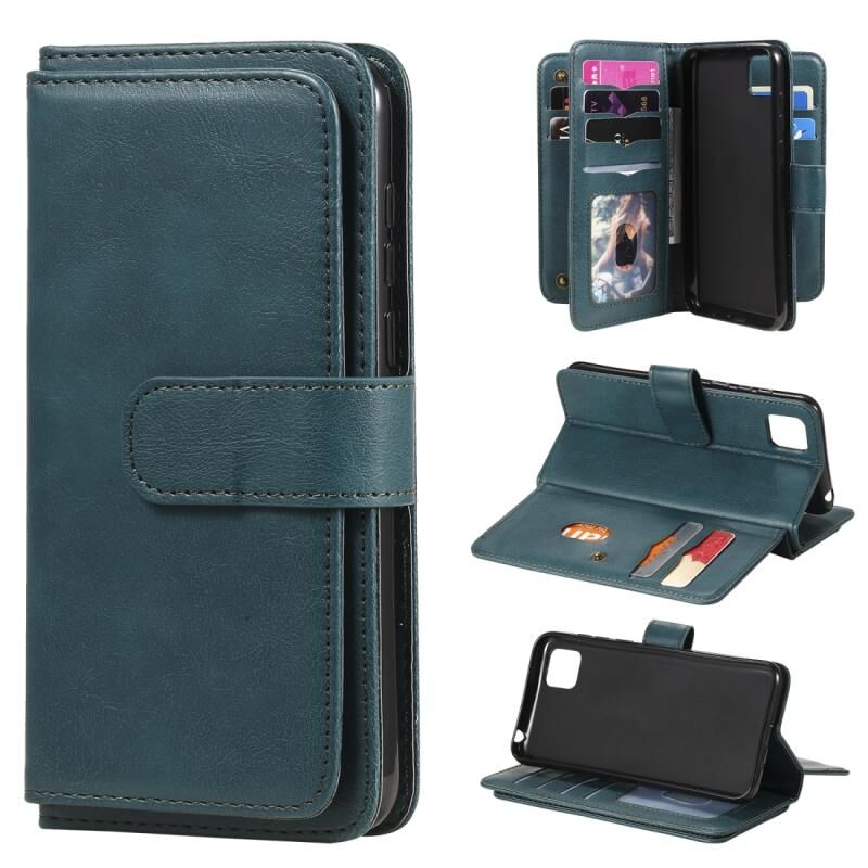 Για Huawei Y5P / 9S Πολυλειτουργικό μαγνητικό χαλκό πόρπη οριζόντια Flip στερεό χρώμα δερμάτινη θήκη με 10 υποδοχές για κάρτες & πορτοφόλι & κάτοχος & κορνίζα φωτογραφιών (σκούρο πράσινο)