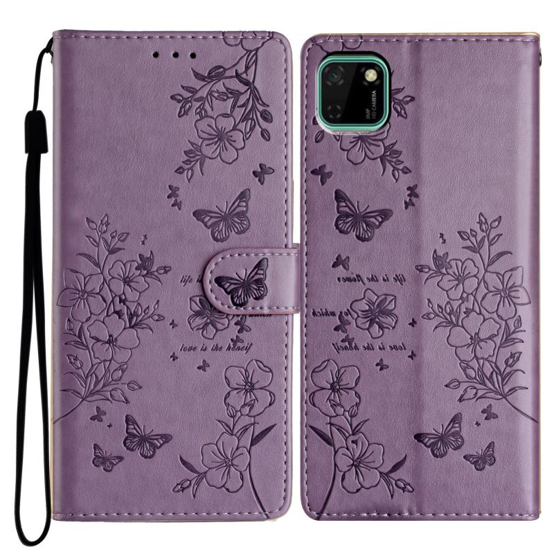 For Huawei Y5p Butterflies And Flowers Leather Phone Case(Purple)