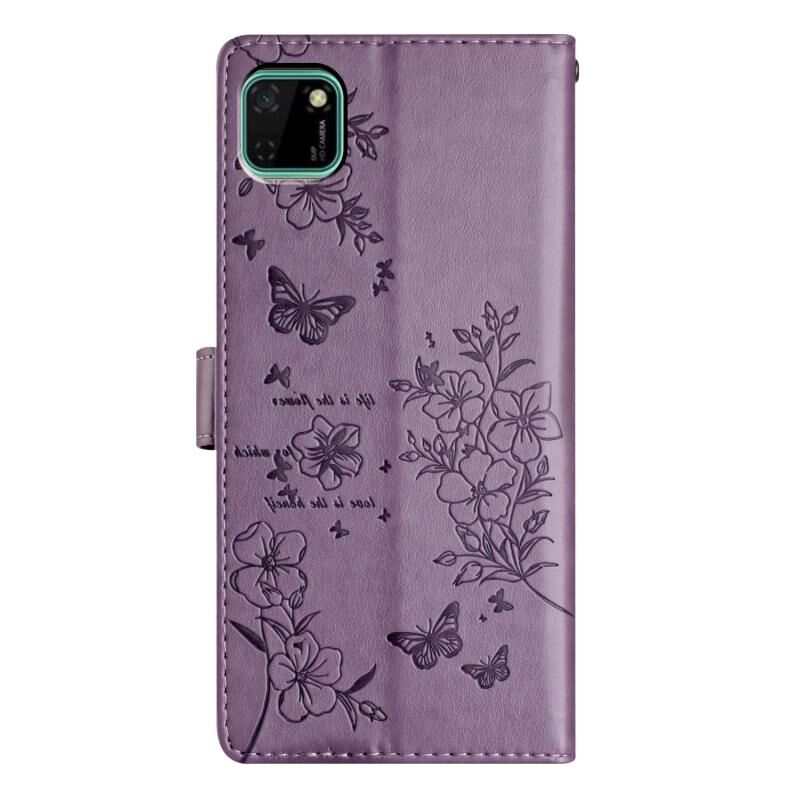 Θήκη τηλεφώνου από δέρμα για Huawei Y5p με σχέδια πεταλούδες και λουλούδια (Μαύρο)