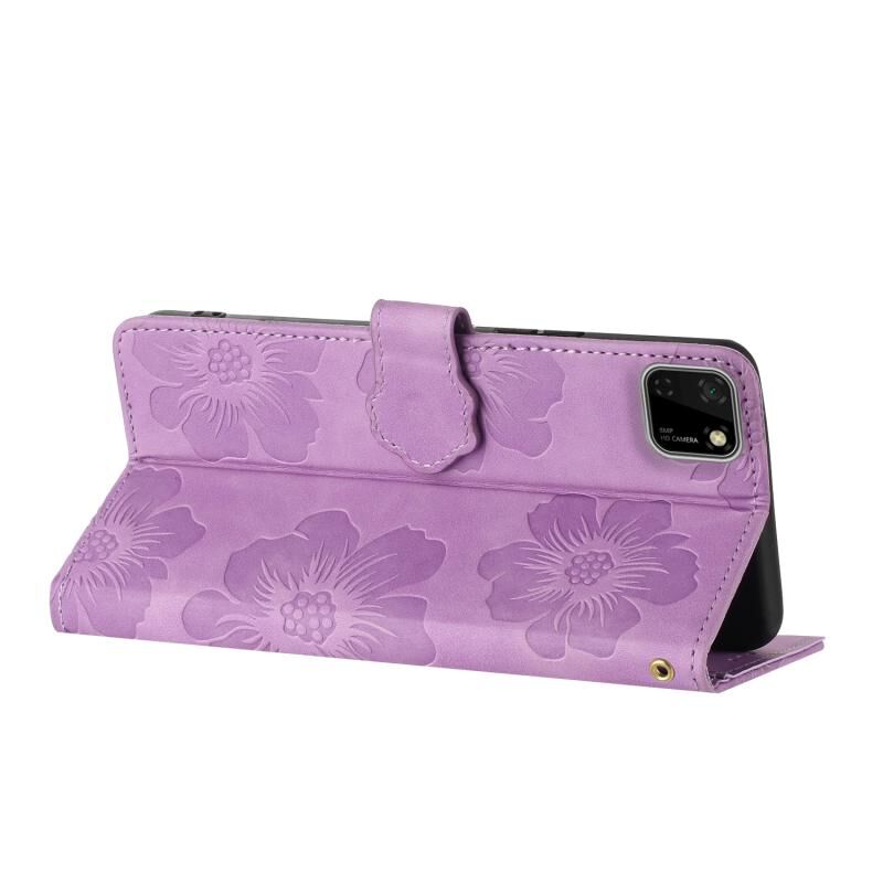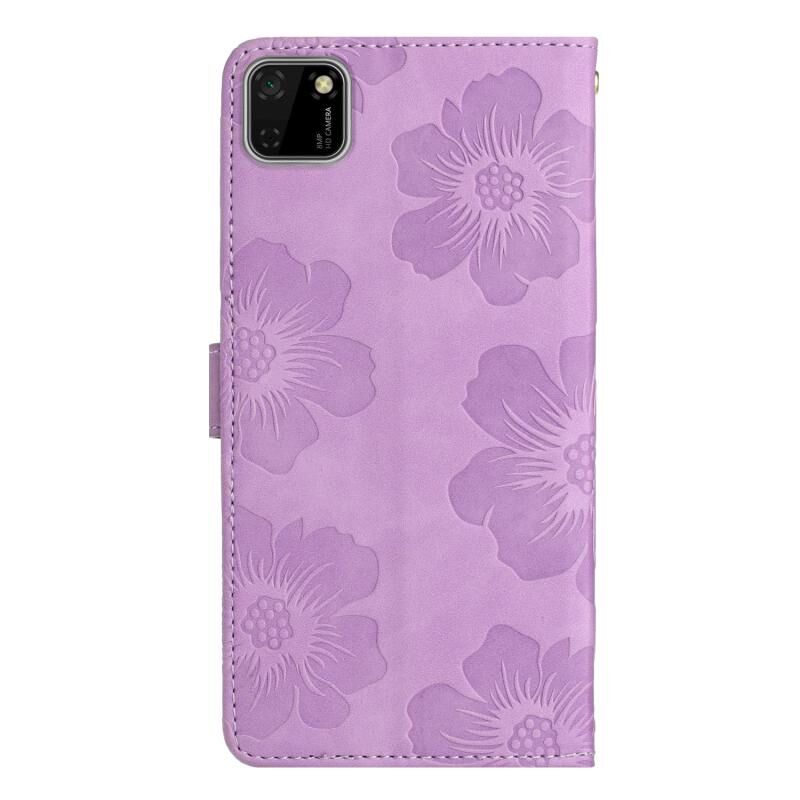 Για Huawei Y5p λουλούδι ανάγλυφο μοτίβο δερμάτινη θήκη τηλεφώνου (μωβ)