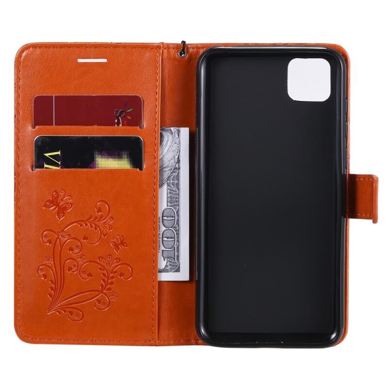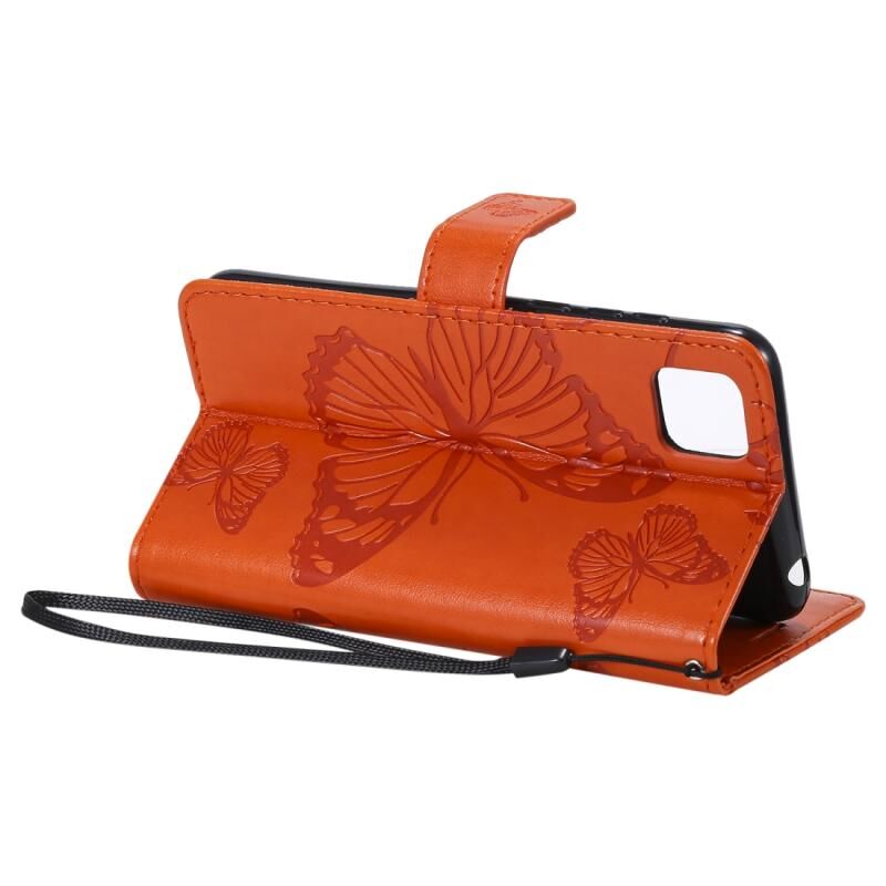 Θήκη δέρματος οριζόντιας αναδίπλωσης με ανάγλυφο σχέδιο 3D πεταλούδων για Huawei Y5P / Honor 9s, με βάση στήριξης & υποδοχή κάρτας & πορτοφόλι (Πορτοκαλί)