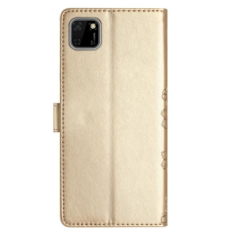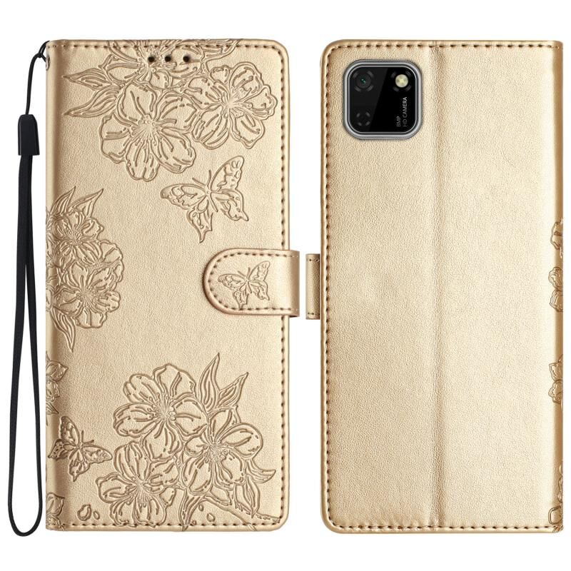 Θήκη τηλεφώνου Huawei Y5p / Honor 9S με ανάγλυφο σχέδιο Cherry Blossom Butterfly από PU δέρμα (Κόκκινο)
