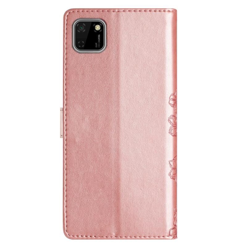Θήκη τηλεφώνου Huawei Y5p / Honor 9S με ανάγλυφο σχέδιο Cherry Blossom Butterfly από PU δέρμα (Κόκκινο)