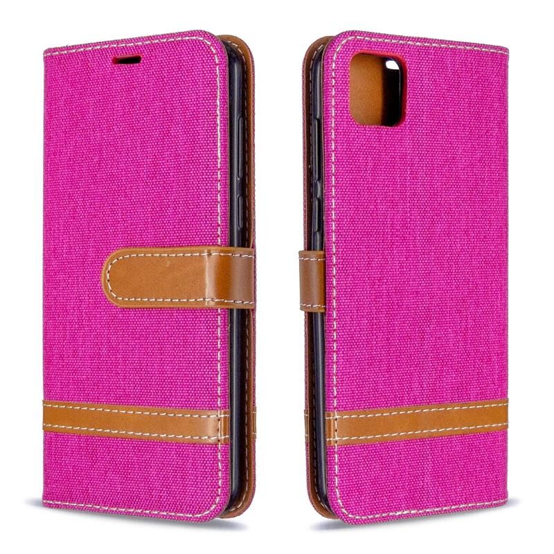 Για Huawei Y5P / Honor 9S Χρώμα Matching Denim Υφή Οριζόντια Flip δερμάτινη θήκη με θήκη & υποδοχές καρτών & πορτοφόλι & κορδόνι (Ροζέ κόκκινο)