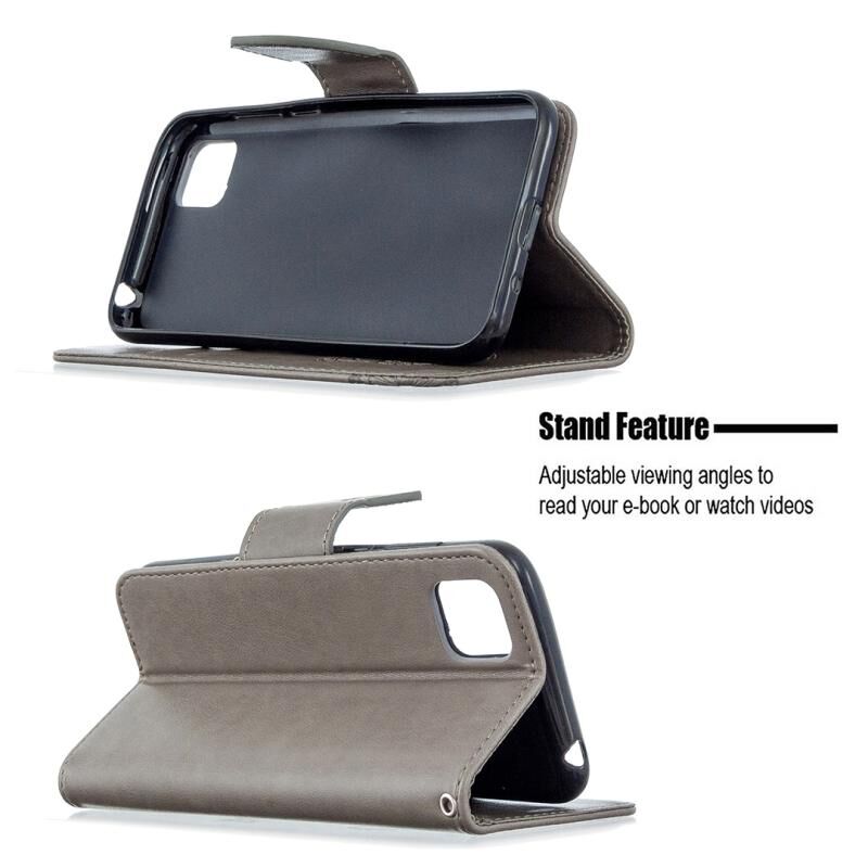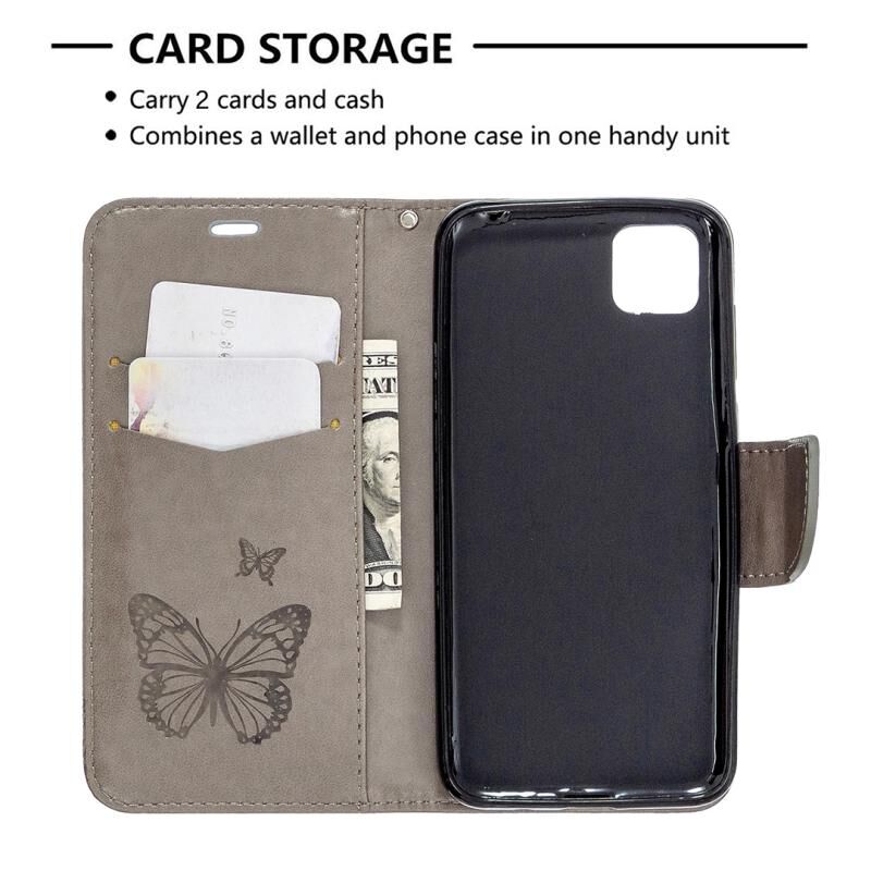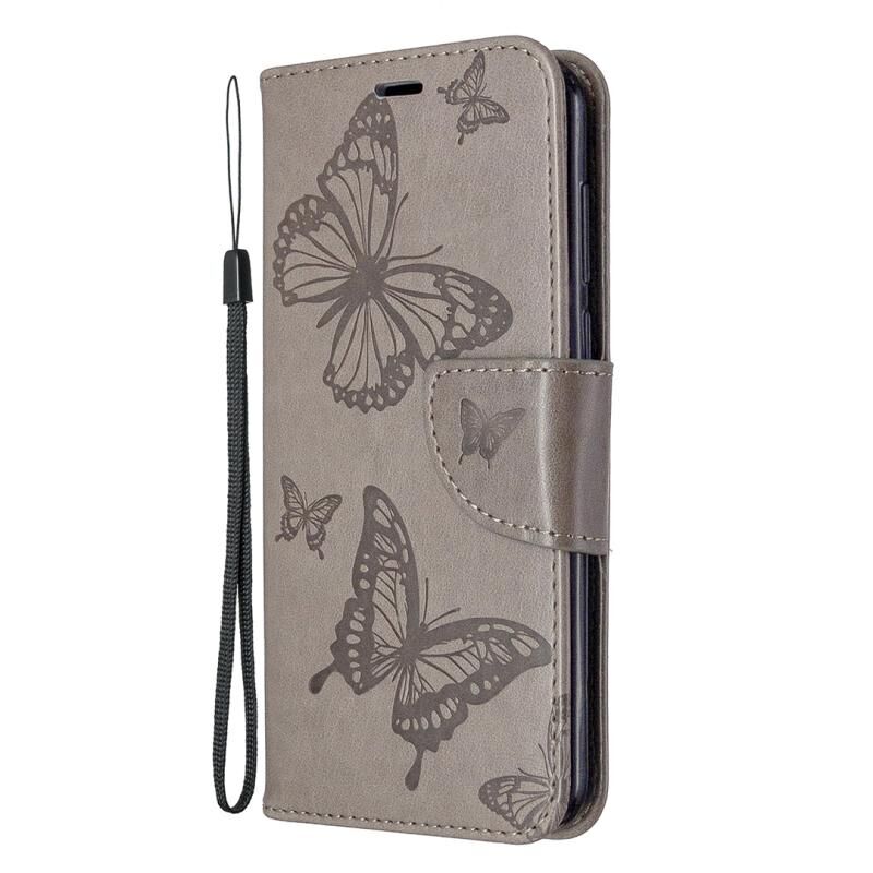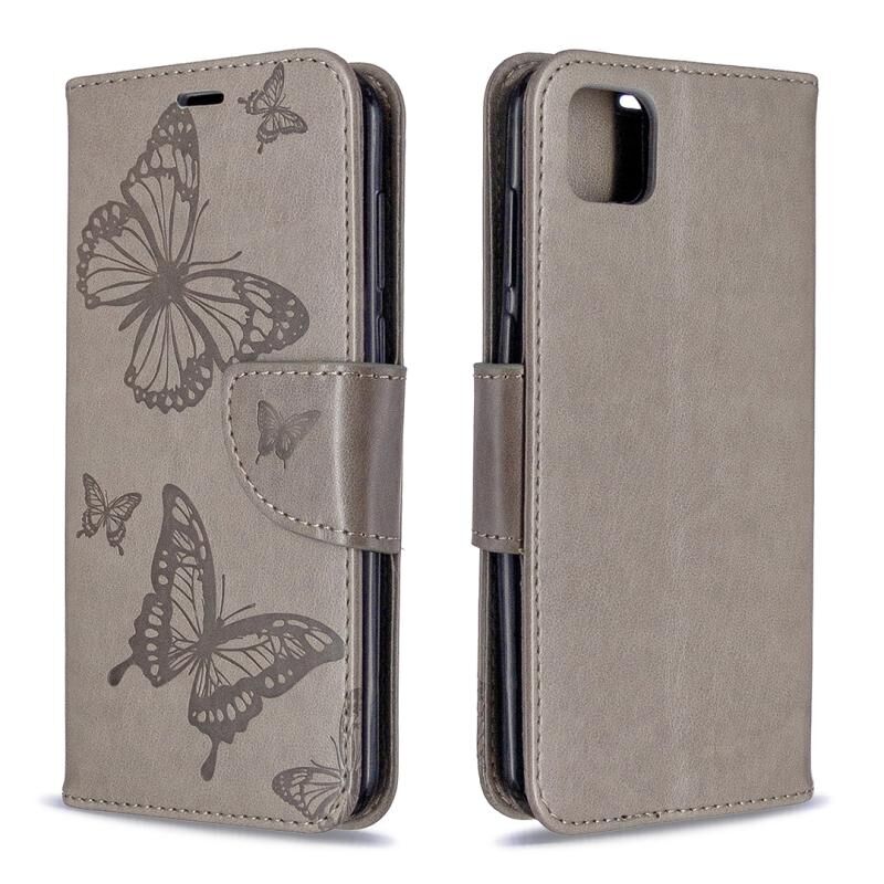 Για Huawei Y5P / Honor 9S Δύο πεταλούδες ανάγλυφο μοτίβο οριζόντια Flip δερμάτινη θήκη με κάτοχο & υποδοχή κάρτας & πορτοφόλι & Lanyard (γκρι)
