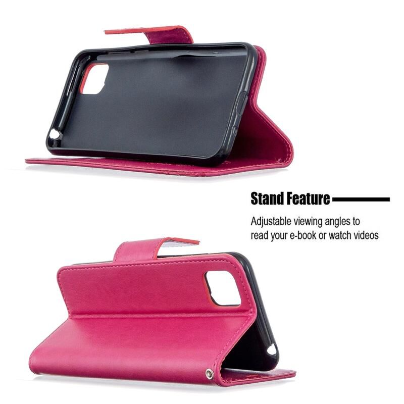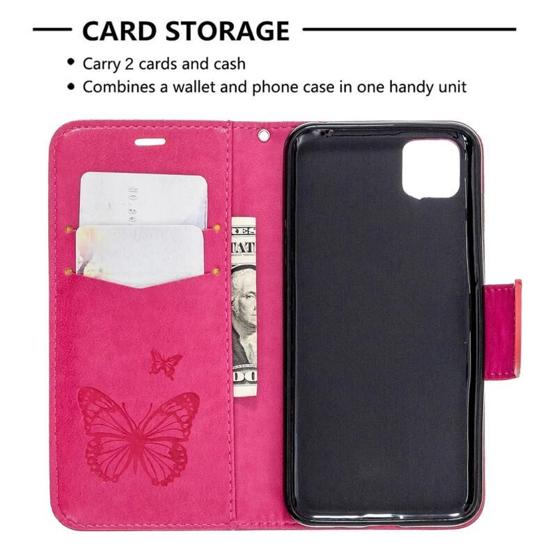 Για Huawei Y5P / Honor 9S Δύο πεταλούδες ανάγλυφο μοτίβο οριζόντια Flip δερμάτινη θήκη με κάτοχο & υποδοχή κάρτας & πορτοφόλι & Lanyard (Rose Red)