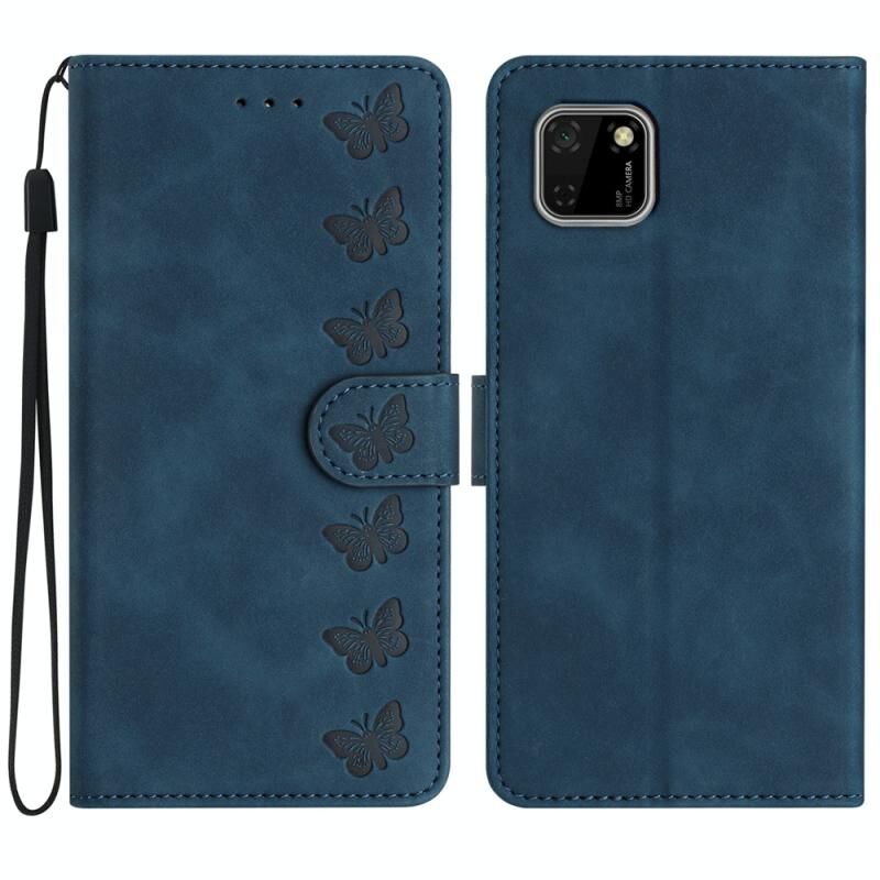 Για Huawei Y5p Επτά πεταλούδες ανάγλυφη δερμάτινη θήκη τηλεφώνου (μπλε)