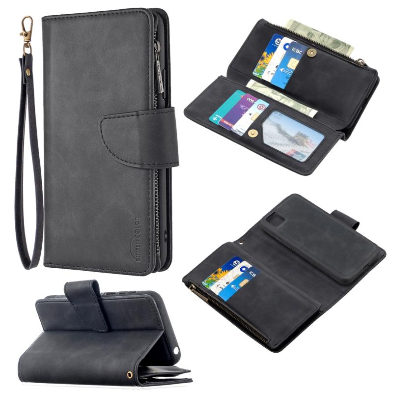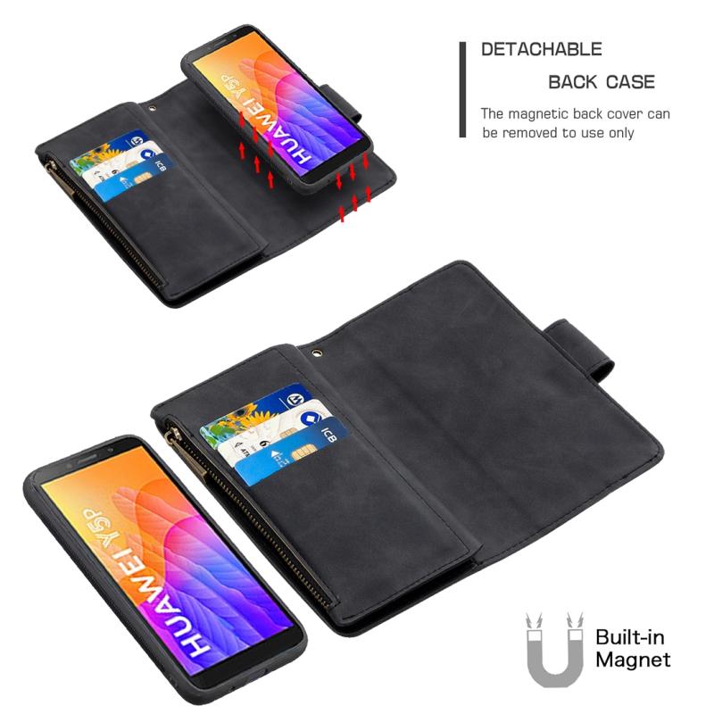 For Huawei Y5P Skin Feel Detachable Magnetic Zipper Horizontal Flip PU Leather Case with Multi-Card Slots & Holder & Wallet & Photo Frame & Lanyard(Black)