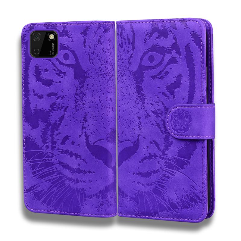 For Huawei Y5p Tiger Embossing Pattern Horizontal Flip Leather Case with Holder & Card Slots & Wallet(Purple)
