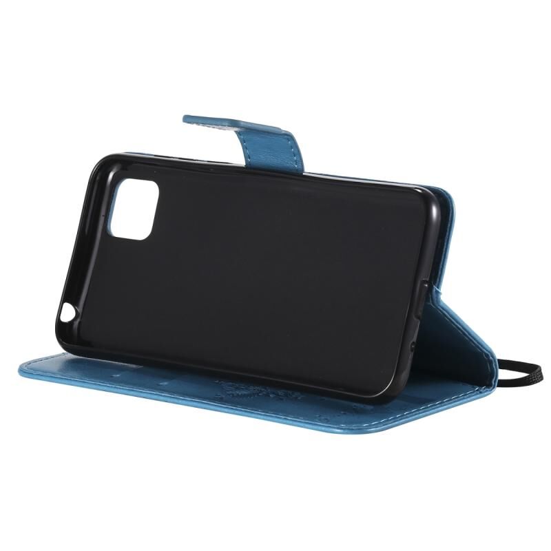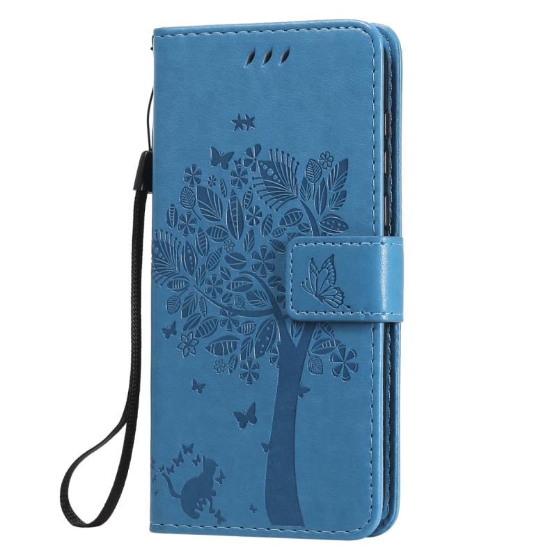 Θήκη Huawei Y5p Δερμάτινη Οριζόντια με Αναγλυφία Δέντρου & Γάτας με Στήριξη & Θήκες Καρτών & Πορτοφόλι & Λουρί (Μπλε)
