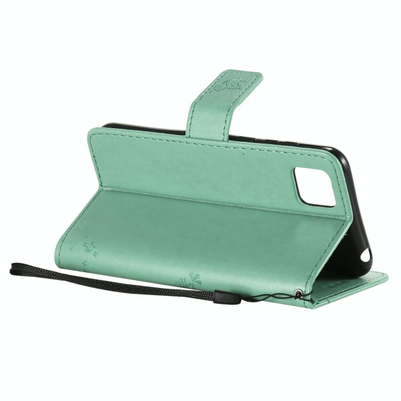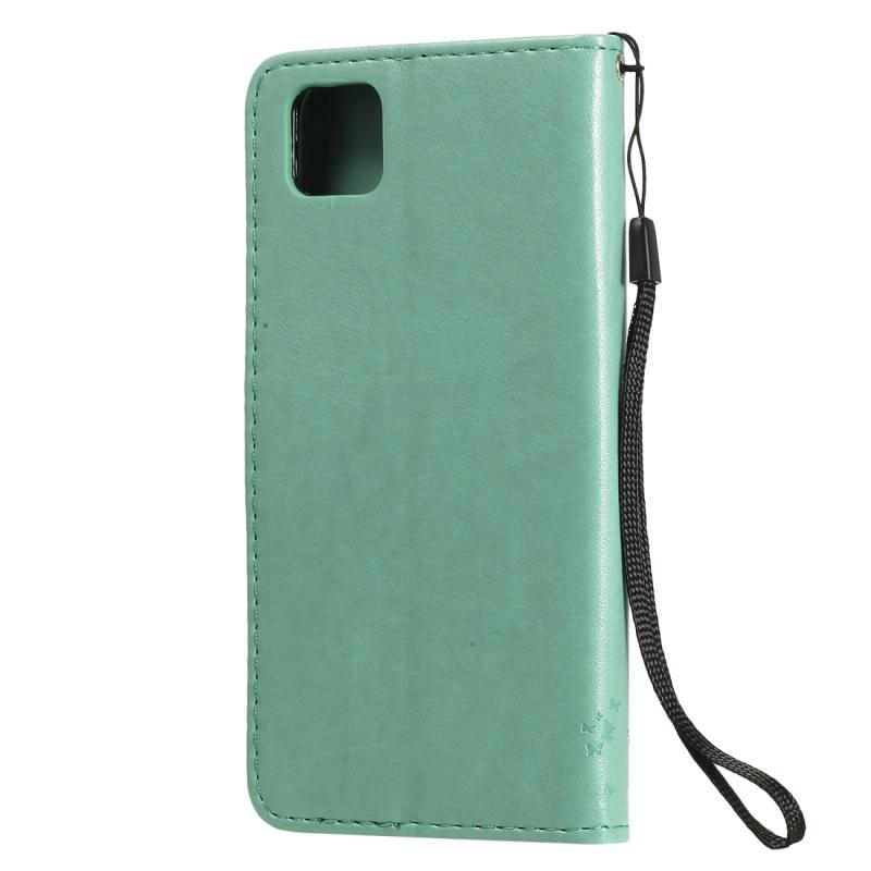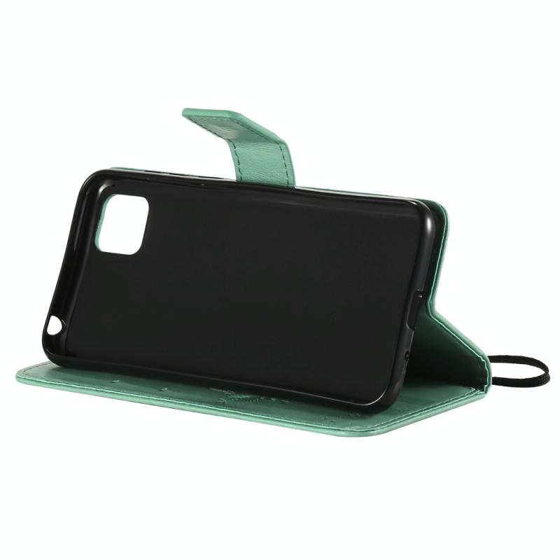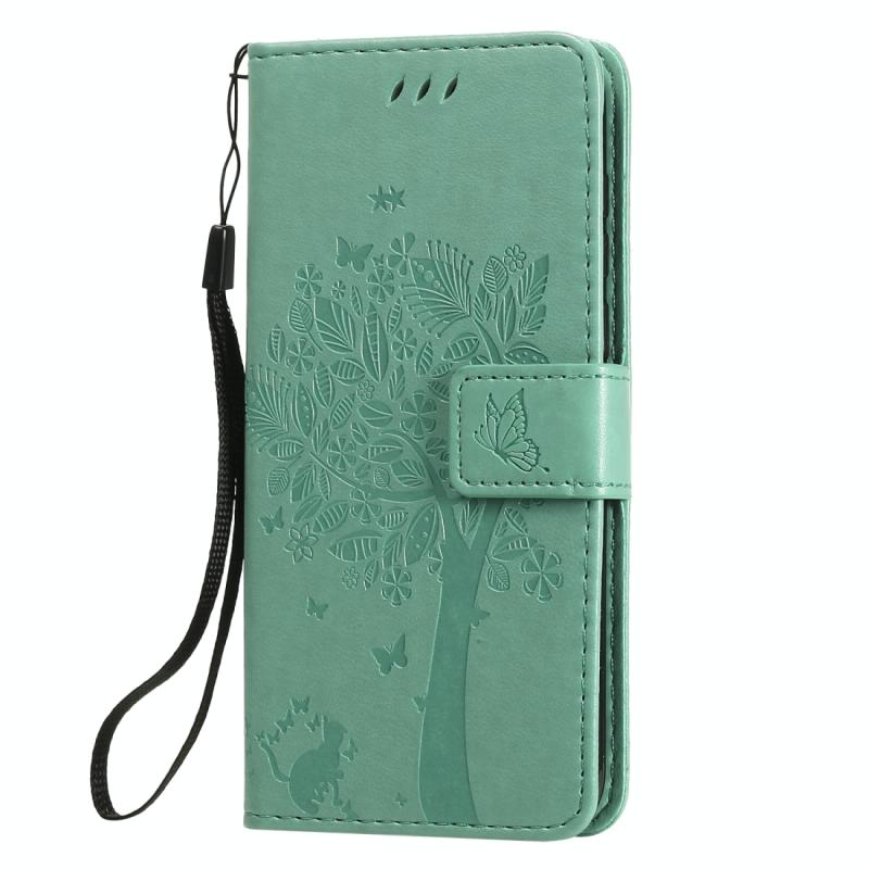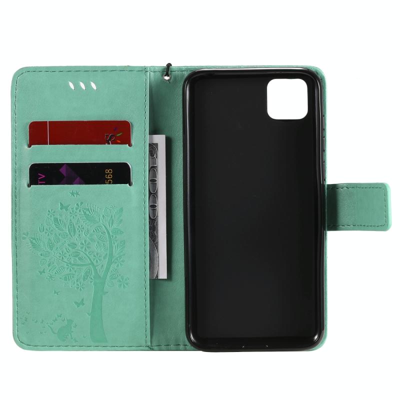 Θήκη Huawei Y5p Δερμάτινη Οριζόντια με Αναγλυφία Δέντρου & Γάτας με Στήριξη & Θήκες Καρτών & Πορτοφόλι & Λουρί (πράσινο)