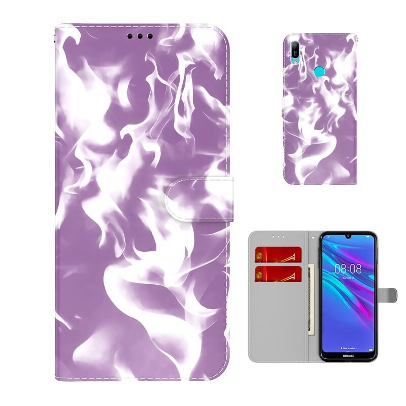 Για το Huawei Y6 2019 Cloud Fog Pattern Οριζόντια Flip δερμάτινη θήκη με υποδοχή για κάρτες και πορτοφόλι (μωβ)