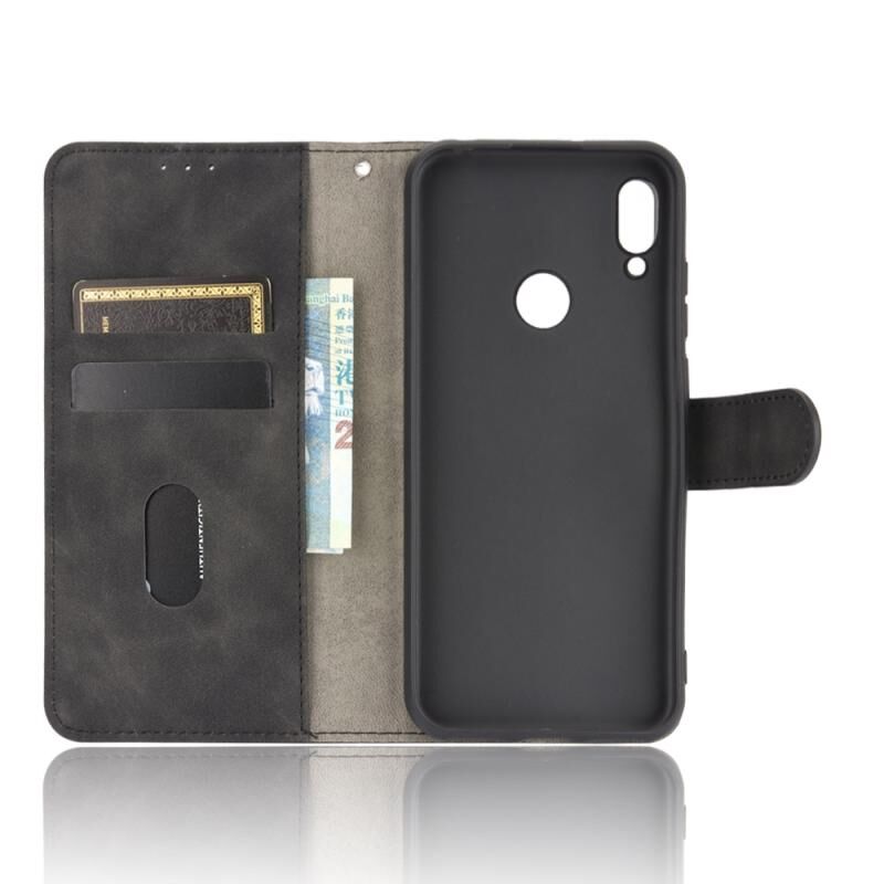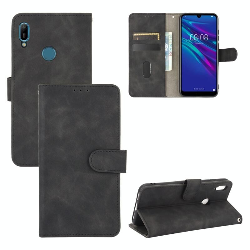 Για Huawei Y6 (2019) / Honor Y6s Αμιγές χρώμα δέρμα αίσθηση μαγνητική πόρπη οριζόντια Flip μοσχάρι υφή PU δέρμα υπόθεση με κάτοχο & υποδοχές καρτών & πορτοφόλι (μαύρο)