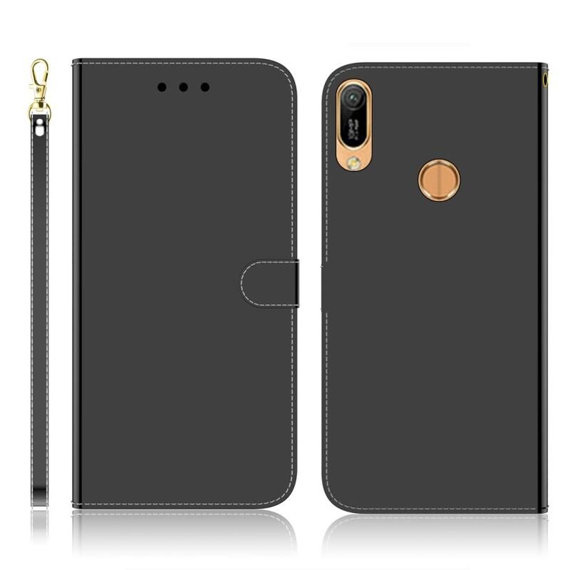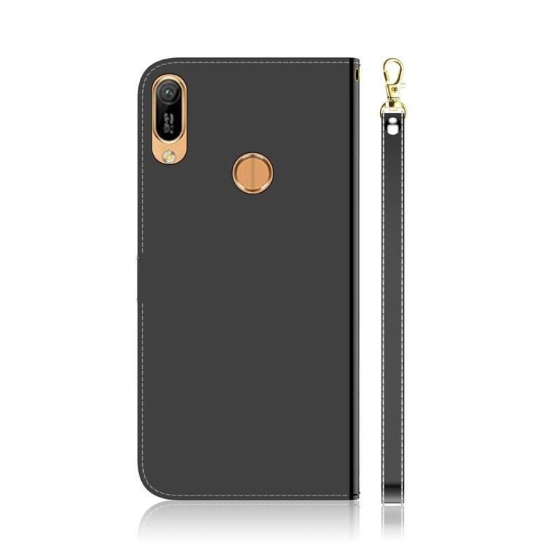 Για Huawei Y6 (2019) Απομιμητική επιφάνεια καθρέφτη Οριζόντια θήκη από δέρμα με θήκη για κάρτες & υποδοχές για κάρτες & πορτοφόλι & κορδόνι (Μαύρο)