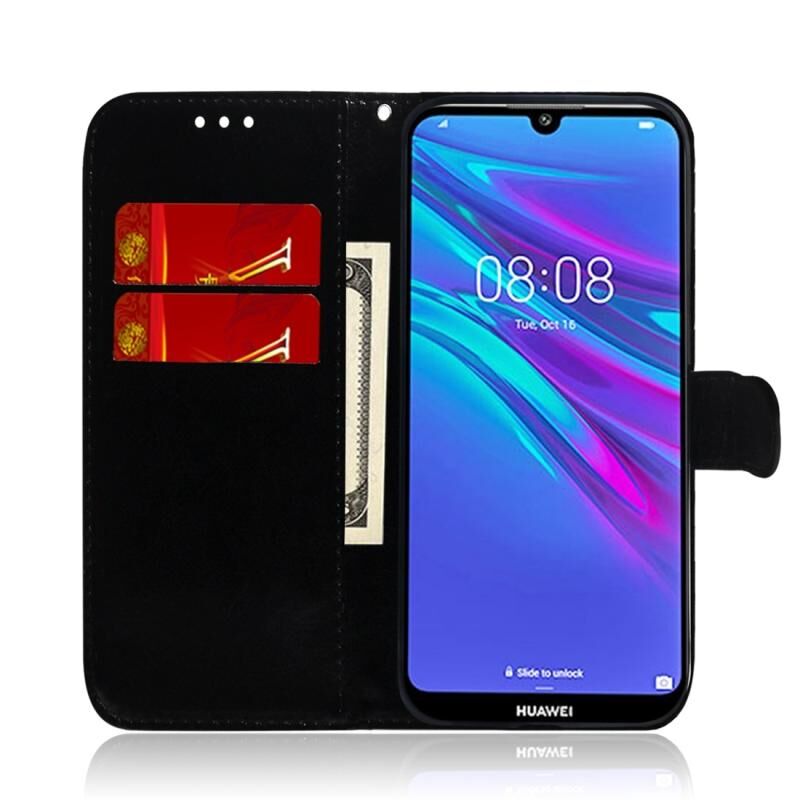 Για Huawei Y6 (2019) Απομιμητική επιφάνεια καθρέφτη Οριζόντια Flip δερμάτινη θήκη με θήκη & υποδοχές καρτών & πορτοφόλι & κορδόνι (ασημί)