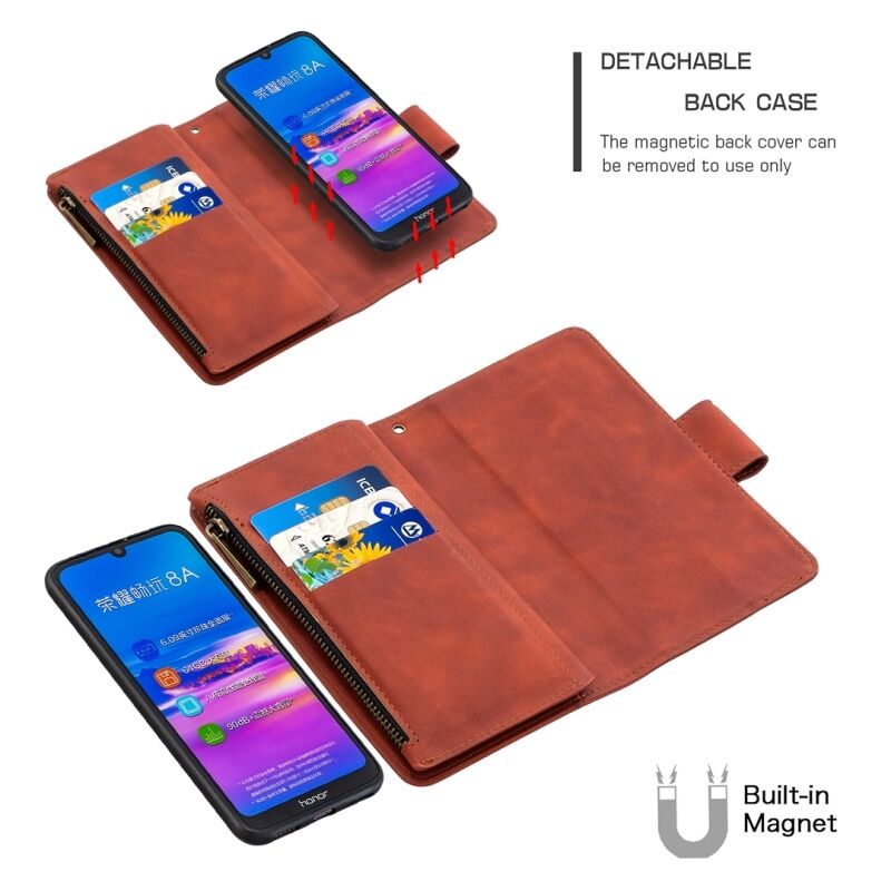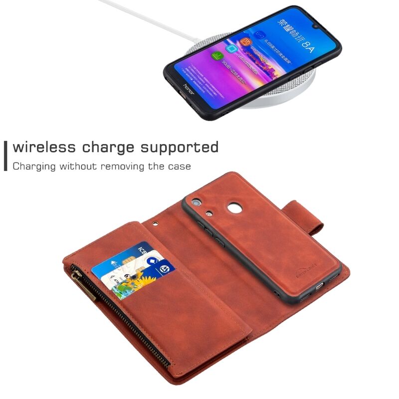 Για το Huawei Y6 (2019) Skin Feel Αποσπώμενο μαγνητικό φερμουάρ Οριζόντια Flip PU δερμάτινη θήκη με θήκη & υποδοχές για κάρτες & πορτοφόλι & κορνίζα & κορδόνι φωτογραφιών (καφέ)