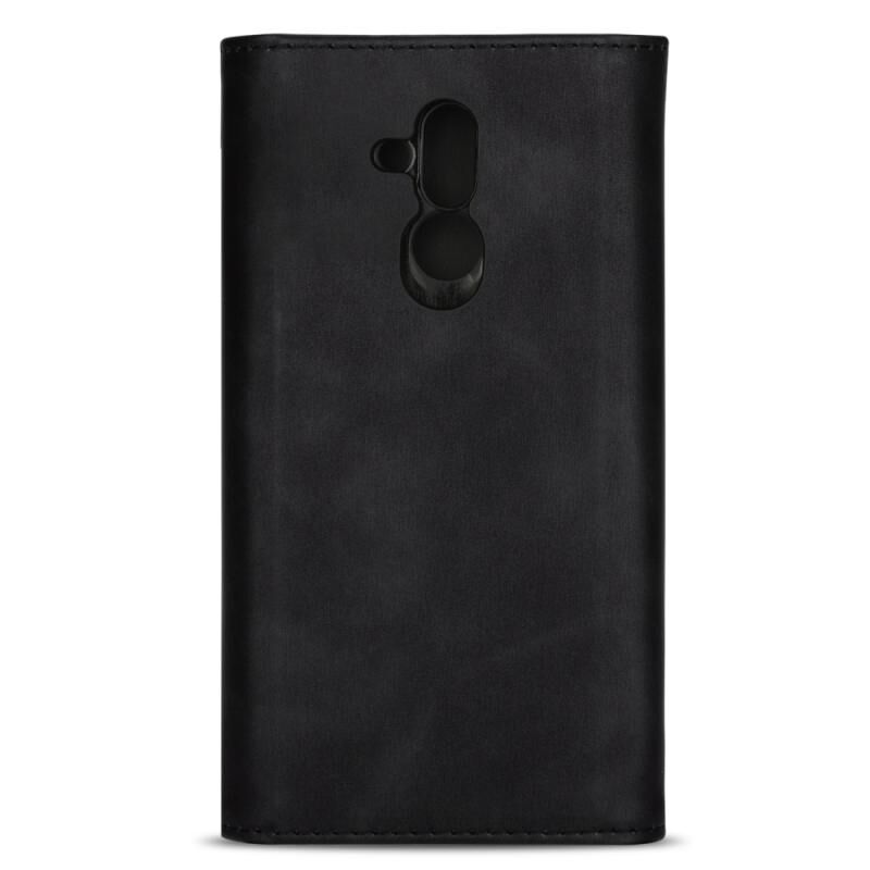 Θήκη Huawei Y6 (2019) με υφή δέρματος, οριζόντια, με φερμουάρ, με βάση στήριξης, θήκες για κάρτες, κορνίζα φωτογραφιών, κορδόνι και μακρύ σχοινί (Μαύρο)